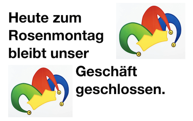 Am Rosenmontag 16.02. 2026 bleibt unser Geschäft geschlossen.